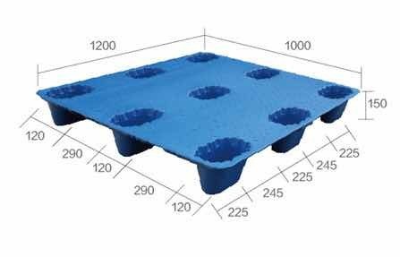 Χουάντινγκ 9 ποδιών Grid 1200x1000mm πλαστική παλέτα Χωρίς Χάλυβα
