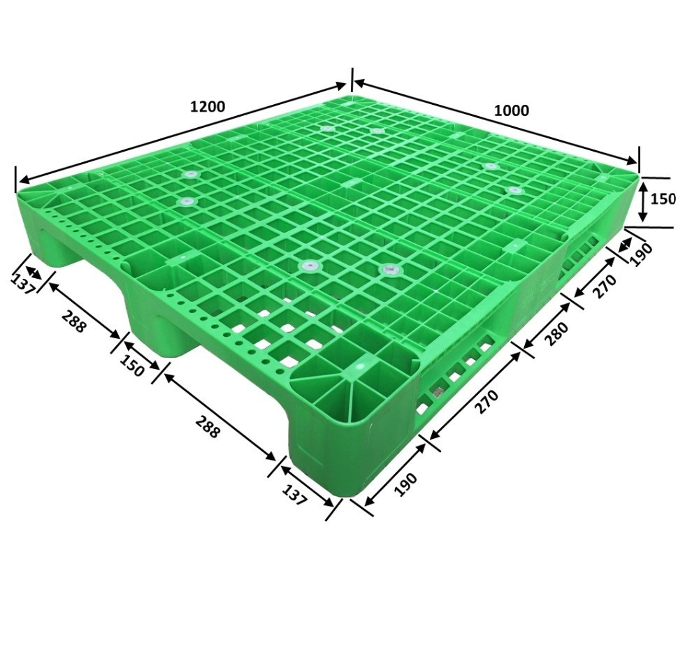 Τυποποιημένη πράσινη πλαστική πλαστική παλέτα 1200x1000