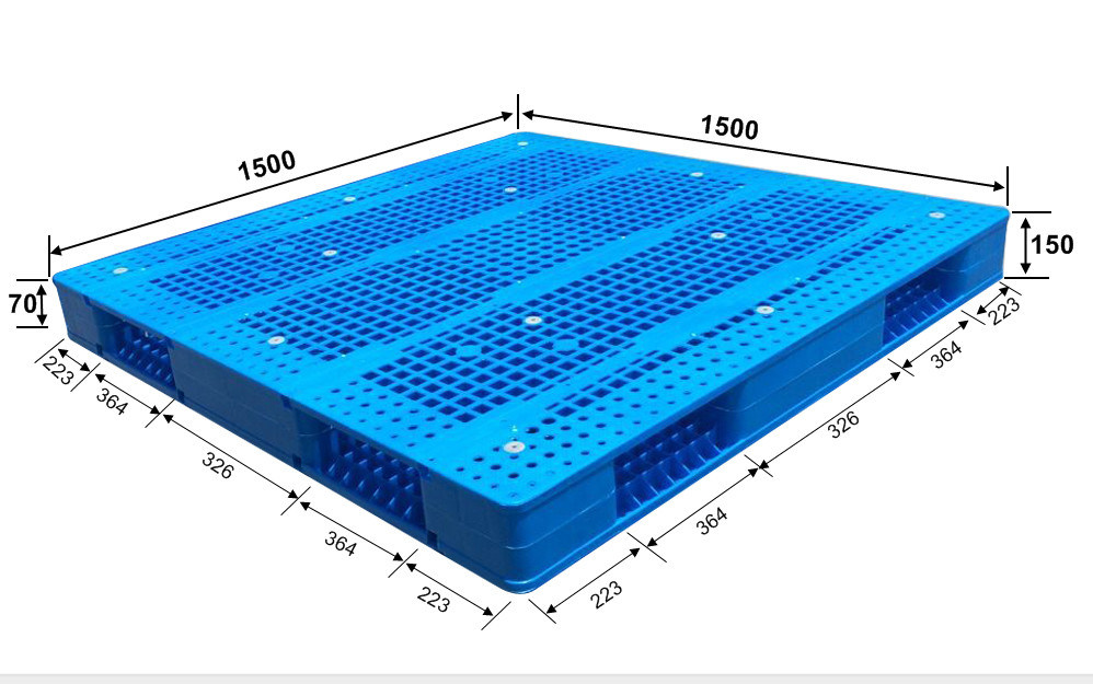 Εναρμονισμένη πλαστική παλέτα διπλής όψης ανοιχτού καταστρώματος 1500x1500mm | ||||||