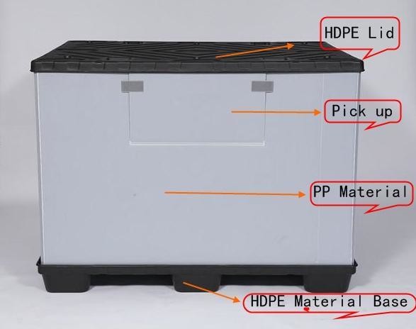 Τύπος πλαστικού: | ΠΕ | Ονομασία προϊόντος: | Πλαστικό κιβώτιο παλετών PP με τη ρίψη του καπακιού και της παλέτας |